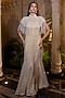 Ivory & Beige Tissue Chiffon Hand Embroidered Fish-Cut Gown With Cape