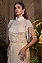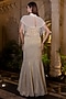 Featuring an ivory and beige fish-cut gown in tissue chiffon base with pearls, cutdana and sequins hand embroidery. It is paired with an embroidered cape. Accentuate with polki jewellery and heels for an engagement or sangeet ceremony.