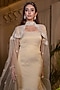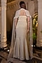 Featuring an ivory and beige gown in tissue chiffon base with zardosi, pearls, cutdana and sequins hand embroidery. It is paired with an embroidered cape. Accentuate with polki jewellery and heels for an engagement or sangeet ceremony.