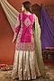 Featuring a pink and ivory kurta in silk base with zardozi, zari, cutdana, sequins and pearls embroidery. It is paired with an embroidered gajji satin lehenga and a pure organza dupatta. Accentuate with statement earrings and heels for any festive occasion or sangeet ceremony.
