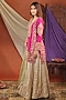 Ivory & Pink Gajji Satin Silk Hand Embroidered Lehenga Set