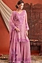 Featuring a mauvish pink kurta in chanderi silk tissue base with applique and cutdana hand embroidery. It is paired with embroidered sharara pants and a pure organza dupatta. Accentuate with statement earrings and heels for any festive occasion or sangeet ceremony.