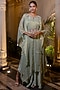 Featuring a mint green kaftan in tissue chiffon base with pearls, beads, zardosi, cutdana and swarovski hand embroidery. It is paired with crepe sharara pants, a bustier and a belt. Accentuate it with zircon jewellery and heels for an elegant look, Perfect for a festive occasion or mehendi ceremony.