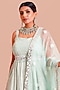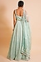 Featuring a pistachio green anarkali in georgette base with thread and mirror hand embroidery. It is paired with a matching organza dupatta and a belt.