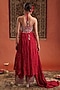 Featuring a red kurta in silk and crinkled silk base with zari, zardosi, sequins, pearl and cutdana hand embroidery. It is paired with silk pants and a dupatta. Accentuate it with statement jewellery, heels and a potli for a festive occasion, wedding or engagement ceremony.