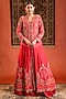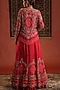 Featuring a red jacket in silk base with zari, pearl, zardosi, sequins and cutdana hand embroidery. It is paired with a satin skirt. Accentuate it with statement jewellery, heels and a potli for a wedding, sangeet or engagement ceremony.