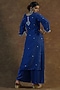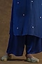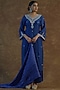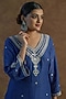 Featuring a royal blue kurta in natural linen base with mirror and resham embroidery. It is paired with matching mashru silk satin palazzo pants and a silk dupatta.