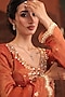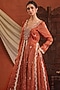 Featuring a rustic orange kurta in chanderi silk tissue base with sequins, cutdana, zari, pearl, cutwork and zardosi hand embroidery. It is paired with a crinkled silk skirt and a pure organza dupatta. Accentuate it with statement jewellery, a clutch and block heels for a wedding, sangeet or cocktail ceremony.