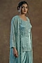 Sea Green Zari Tissue Chanderi Embroidered Jacket Set