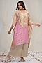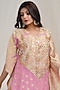 Featuring a taffy pink kaftan in banarasi georgette base with pearls, mirror, and cutdana hand embroidery. It is paired with a matching inner.