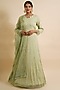 Featuring a tea green anarkali in georgette base with thread and cutdana hand embroidery. It is paired with a matching organza dupatta.