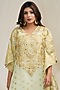 Featuring a tea green kaftan in banarasi georgette base with pearls, mirror, and cutdana hand embroidery. It is paired with a matching inner. This contains only two pieces.