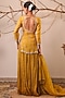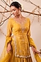 Featuring a yellow kurta in chanderi silk tissue base with zari, pearl, zardosi, sequins and cutdana hand embroidery. It is paired with crinkled silk skirt and a pure organza dupatta. Accentuate it with dangler earrings, heels and a potli for festive occasions, wedding, haldi or engagement ceremony.