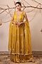 Featuring a yellow kurta in pure organza base with zari, zardosi, cutdana, sequins and pearl embroidery. It is paired with a gajji satin silk bustier, crinkled silk skirt and a pure organza dupatta. Accentuate it with statement jewellery, heels and a clutch for a festive occasion, wedding, sangeet or engagement ceremony.