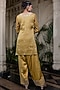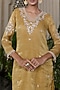 Featuring a yellow kurta in tissue chiffon base with sequins, cutdana, pearl and swarovski hand embroidery. It is paired with farshi salwar pants and a tulle dupatta. Accentuate it with kundan jewellery and heels for a festive occasion, haldi ceremony or family gathering.
