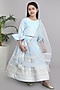 Aqua Blue Net Embroidered Lehenga Set For Girls