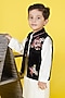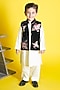 Featuring a black jacket for boys in velvet base with embroidery. It is paired with a white kurta and pyjama. Style it with juttis and a watch for a festive occasion, pooja or wedding ceremony.
