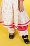 Featuring a cream kurta for girls in cotton base. It is paired with pants and a pink dupatta. Style it with sandals and hair accessories for a festive occasion or pooja ceremony.