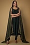 Bottle Green Russian Silk Cut-Beads Embellished Anarkali Set