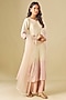 Featuring an ivory and nude pink ombre shaded anarkali in tissue georgette base with sequins, glass beads and crystal hand embellishments. It is paired with lycra pants and a tulle dupatta. Accentuate with statement jewellery and heels for any festive occasion or sangeet ceremony.