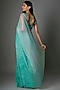 Ocean Blue Crystal Organza Embellished Draped Saree Set