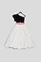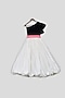 Featuring a black and white one shoulder gown in velvet and silk base. It has a contrasting pink waist belt.