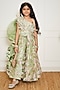 Featuring a green one-shoulder jumpsuit for girls in net base with 3D cutwork, sequins, butterfly and fur embellishment, including an attached draped dupatta.