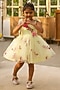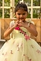 Featuring a green dress for girls in net base with embroidery. Style it with cute hair accessories and sandals for birthday parties or special occasions.