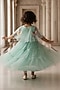 Featuring a green shimmer gown for girls in net base. It is paired with an embroidered cape. Style it with sandals and hair accessories for a festive occasion or sangeet ceremony.
