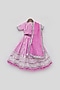 Hot Pink Net Embroidered Frill Lehenga Set For Girls