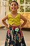 Featuring a multi-colored lehenga for girls in cotton base with 3D floral print. It is paired with a green crop top having a v-neck. Style it with sandals and hair accessories for a festive occasion or wedding ceremony.