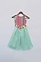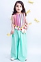 Featuring a multi colored top in knitted base. It is paired with a contrasting aqua green palazzo pants.