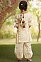 Featuring an off-white kurta in cotton base with lace work. It is paired with matching printed salwar pants and dori tassels.