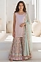 Featuring a peach and green kurta for girls in georgette base with embroidery. It is paired with embroidered sharara pants and a dupatta. Style it with cute hair accessories and sandals for a festive occasion or wedding ceremony.