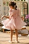 Featuring a peach dress for girls in net base with embroidery. Style it with cute hair accessories and sandals for birthday parties or special occasions.