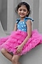 Featuring a pink dress for girls in denim and net base with bow detail and embroidery. Style it with cute hair accessories and sandals for birthday parties or special occasions.