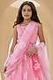 Featuring a pink lehenga saree for girls in dupion and net base with an attached drape and embroidery. It is paired with a blouse. Style it with cute hair accessories and sandals for a wedding or sangeet ceremony.