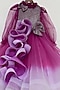 Featuring a purple shaded gown in net base with balloon sleeves and attached flair.