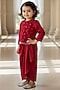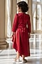 Featuring a red top for girls in net base with embroidery. It is paired with a draped dhoti skirt. Style it with sandals and hair accessories for a festive occasion.
