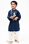 Teal Blue Kurta Set With Motif For Boys