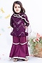 Featuring a wine kurta for girls in georgette and silk base with hand made tassels and mirror embroidery. It is paired with sharara pants and a net dupatta having lace finishing. Style it with cute hair accessories and sandals for a birthday party celebration or festive occasion.