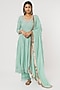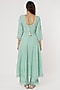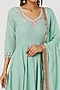 Featuring a blue anarkali in cotton mukaish base with thread, sequin, cutdana, pearl and lace hand embroidery. It is paired with matching cotton palazzo pants having fringed lace border and a flat chiffon dupatta having kiran border.