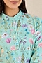 Featuring an aquamarine top in cotton and cotton voile base with two pockets, mandarin collar and floral print. It is paired with pants. Accentuate it with minimal jewellery and heels for office or casual wear.