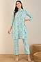 Aqua Marine Cotton Floral Printed Co-Ord Set