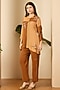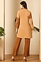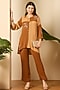 Featuring a beige and brown top in double georgette base with patch work and hand embroidery. It is paired with pants. Accentuate it with hoop earrings and mules for casual outings, brunches or sundowner.