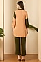 Featuring a beige and olive green top in double georgette base with patch work and hand embroidery. It is paired with pants. Accentuate it with hoop earrings and mules for casual outings, brunches or sundowner.