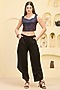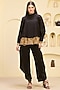 Featuring a black top in cotton satin and banana crepe base with a high-neckline, mirror and thread hand embroidery. It is paired with layered trousers. Ideal for festive parties where modern glamour takes the spotlight.