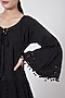 Featuring a black eyelet tiered dress in cotton base with tie-up neckline and tassels.