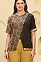 Featuring a black overlap top in cotton satin, cotton voile and banana crepe base with a crew-neckline and thread hand embroidery. It is paired with golden layered trousers. Ideal for festive parties where modern glamour takes the spotlight.