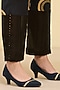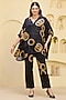 Featuring a black and golden kaftan top in linen satin, cotton satin and banana crepe base with short cuff sleeves, crystal embellishments and print. It is paired with straight trousers. Ideal for festive parties where modern glamour takes the spotlight.